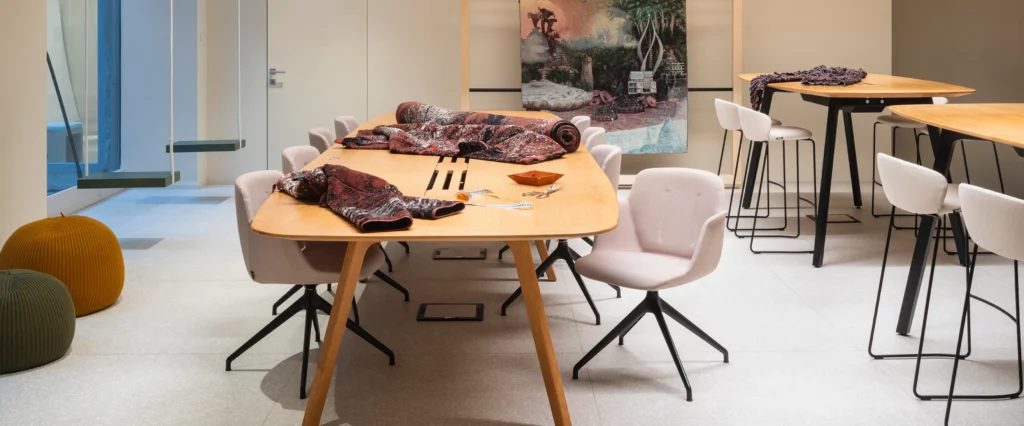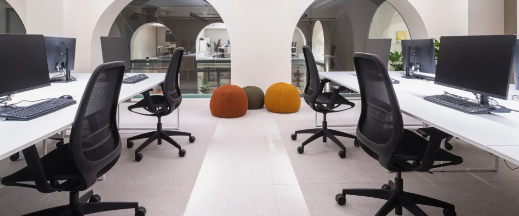 EXA Group intervient avec des démolitions ciblées, de nouvelles configurations des espaces et un aménagement sur mesure, en intégrant un mobilier personnalisé et en adaptant les installations électriques et mécaniques selon des critères de durabilité et de modernisation technologique. Le résultat est un espace coordonné, fonctionnel et représentatif de la culture industrielle et créative du groupe.