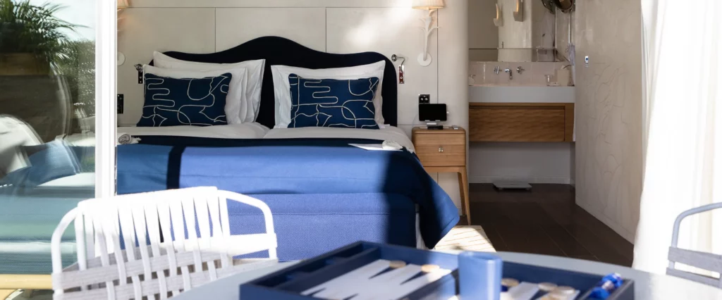 Pour EXA Group, intervenir ici signifiait opérer dans un contexte naturel et architectural extrêmement sensible : un équilibre fait de proportions subtiles, de couleurs atténuées et d’une relation constante avec le paysage. EXA Group a travaillé à la rénovation des intérieurs de l’hôtel, conçus par Jacques Garcia, en se consacrant aux travaux de menuiserie de 16 suites avec une approche presque invisible : des surfaces calibrées, des harmonies chromatiques, des détails qui se perçoivent plus qu’ils ne se montrent. Chaque intervention est pensée pour intensifier le sentiment de calme qui définit l’identité de La Réserve.